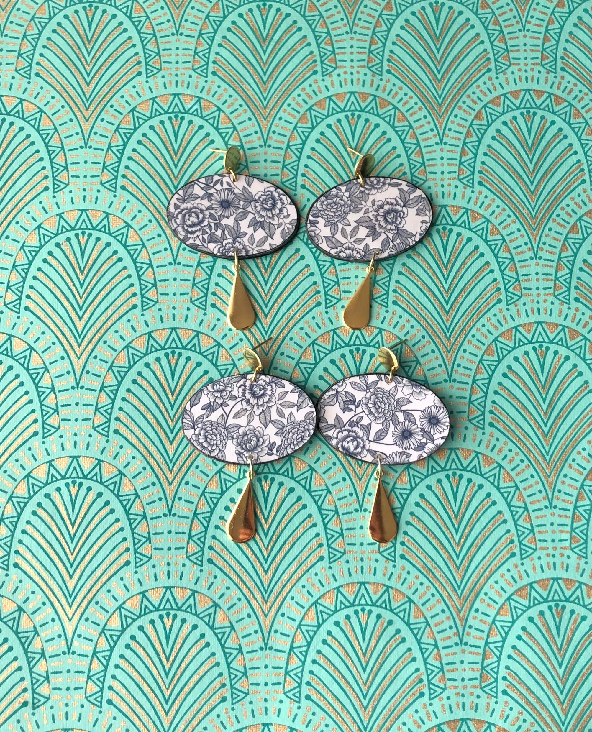 We use paper to create handmade earrings, because is lightweight and versatile. We fuse colors, shapes and patterns. Everything is handmade. Combining paper with beads, charms, tassels and metals like stainless steel or plated brass.