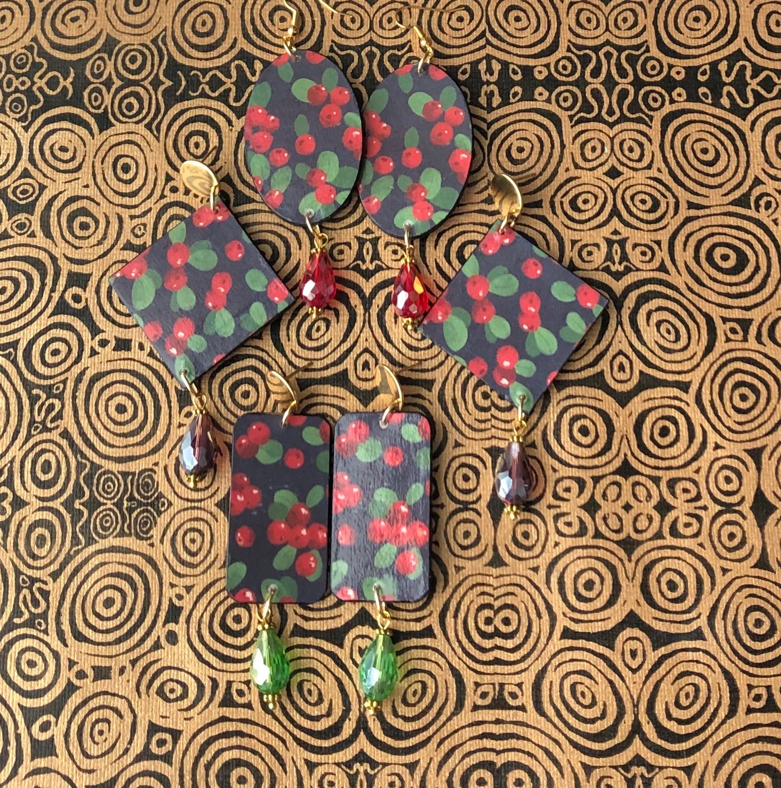 We use paper to create handmade earrings, because is lightweight and versatile. We fuse colors, shapes and patterns. Everything is handmade. Combining paper with beads, charms, tassels and metals like stainless steel or plated brass.