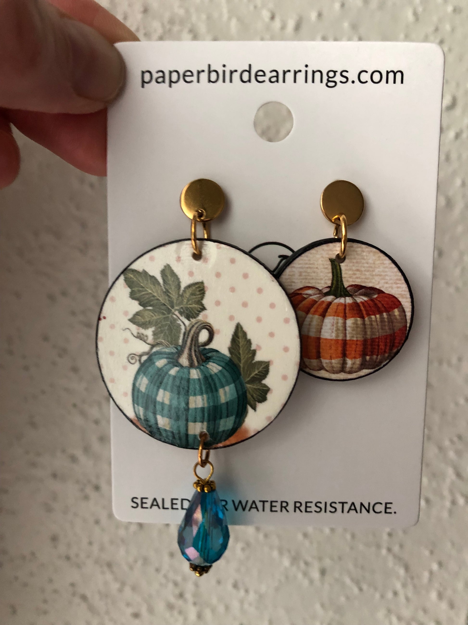 Add a touch of autumn whimsy to your look with these playful earrings. Each earring features a unique pumpkin design, bringing festive charm and a fun twist to your style. Lightweight and comfortable.