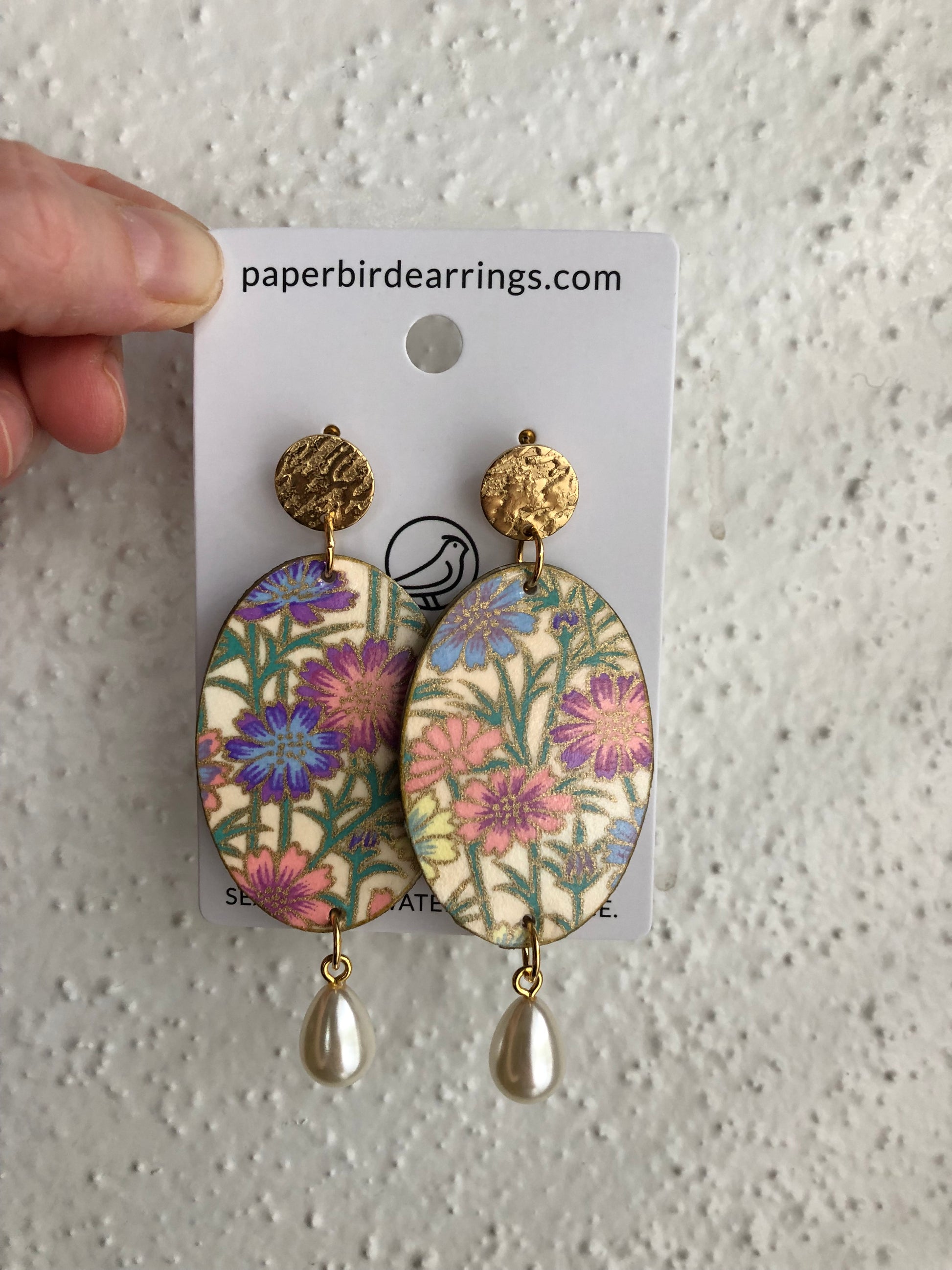 Brighten your style with these daring handmade paper earrings featuring a cheerful flower pattern. Perfect for those who love to stand out.