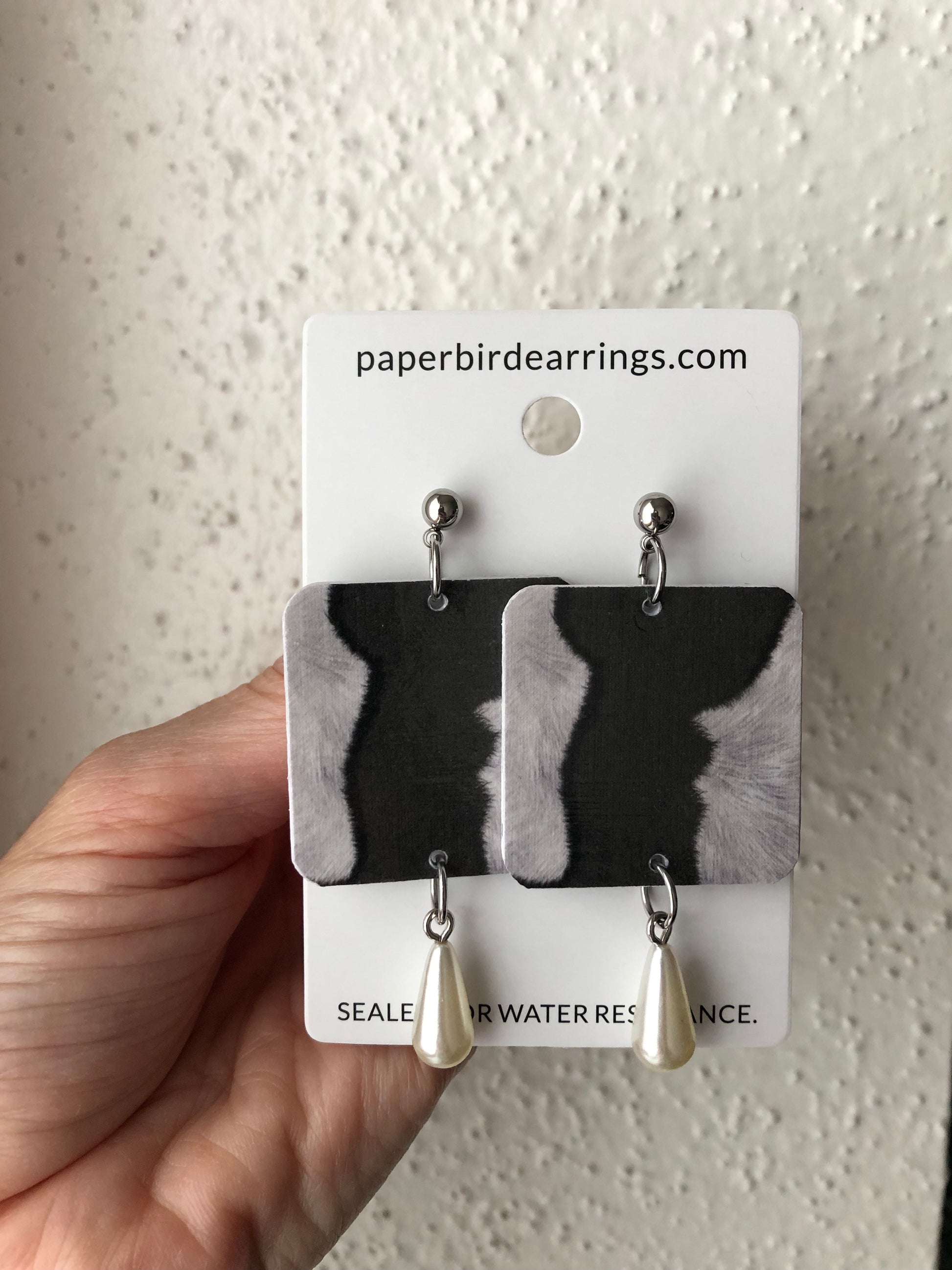 Add a fun twist to your style with these playful Cow Print handmade paper earrings.