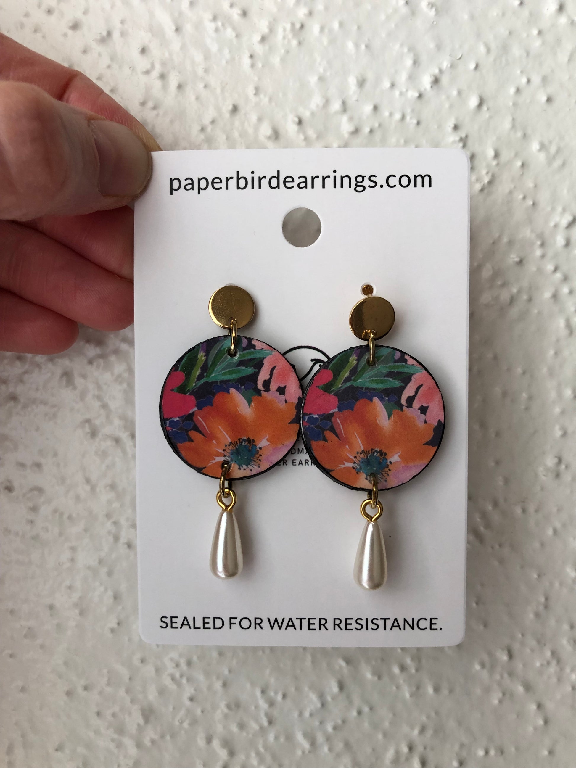 Nature inspired design. Garden handmade paper earrings. Embrace the beauty of spring blooms. Handcrafted with layers of paper for structure and non-toxic materials, with a double-sided paper design. Coated with a water-resistant sealant.