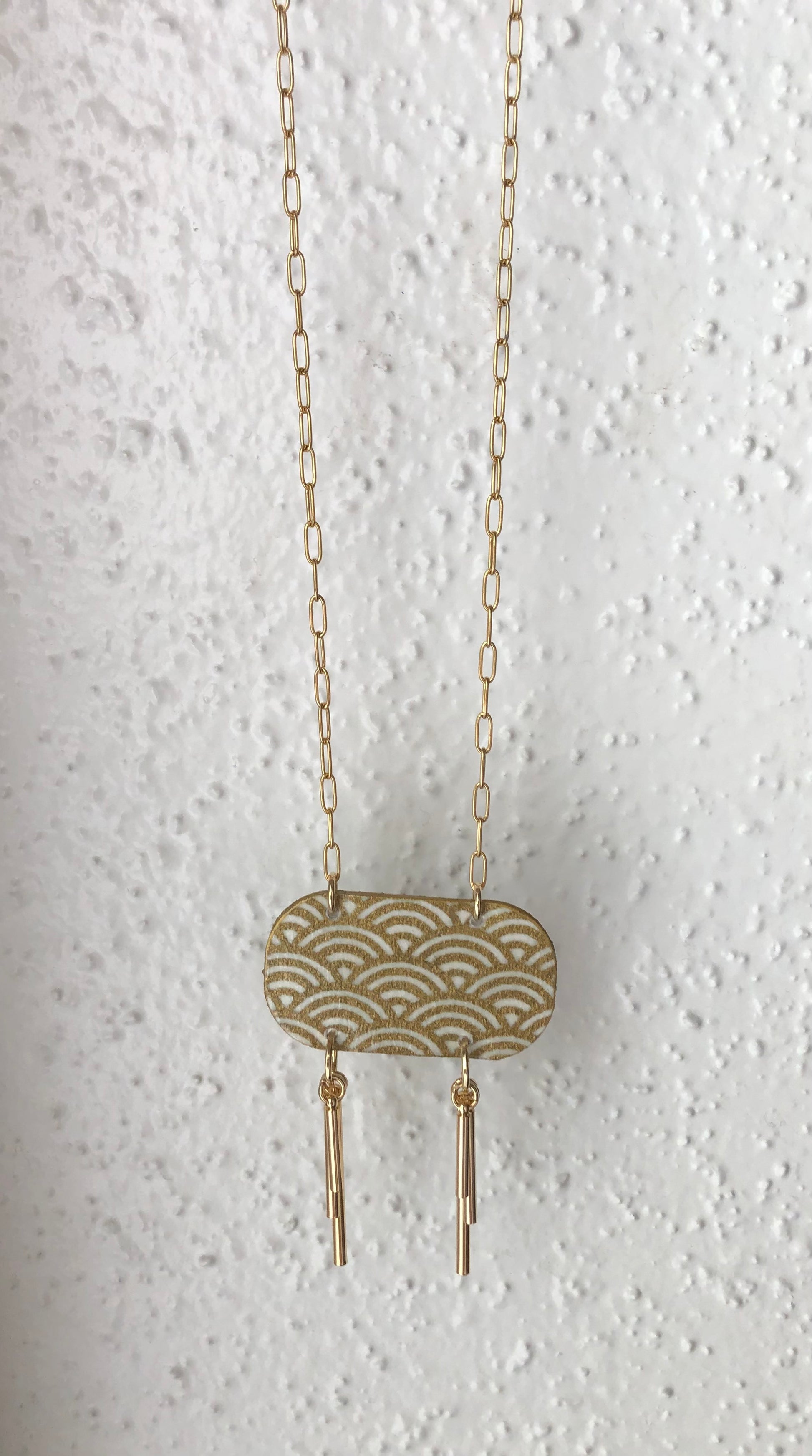 Inspired by the iconic imagery of Japanese art, this delicate necklace captures the fluid movement and timeless elegance of ocean waves. The pattern is called Seigaiha symbol of good luck, everlasting happiness, and peace. The minimalist design makes it versatile enough for everyday wear while maintaining an artistic, refined aesthetic.