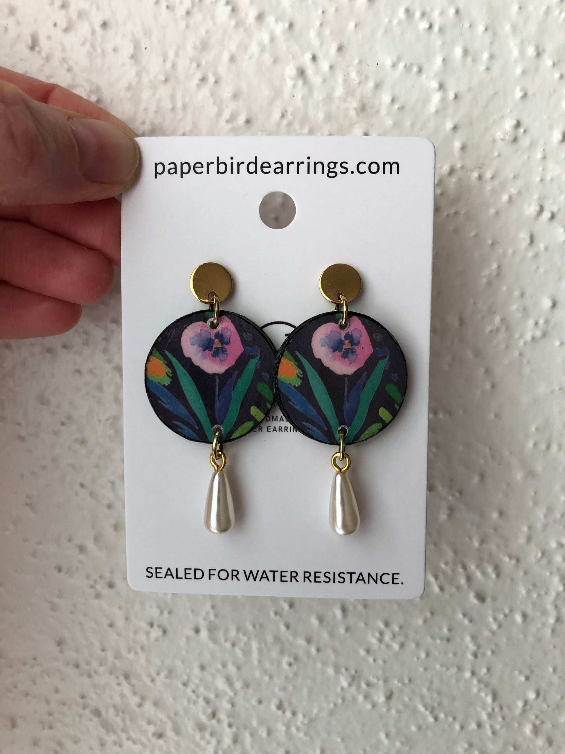 Nature inspired design. Embrace the beauty of spring blooms with pink flower paper earrings. Handcrafted with layers of paper for structure and non-toxic materials, with a double-sided paper design. Coated with a water-resistant sealant.
