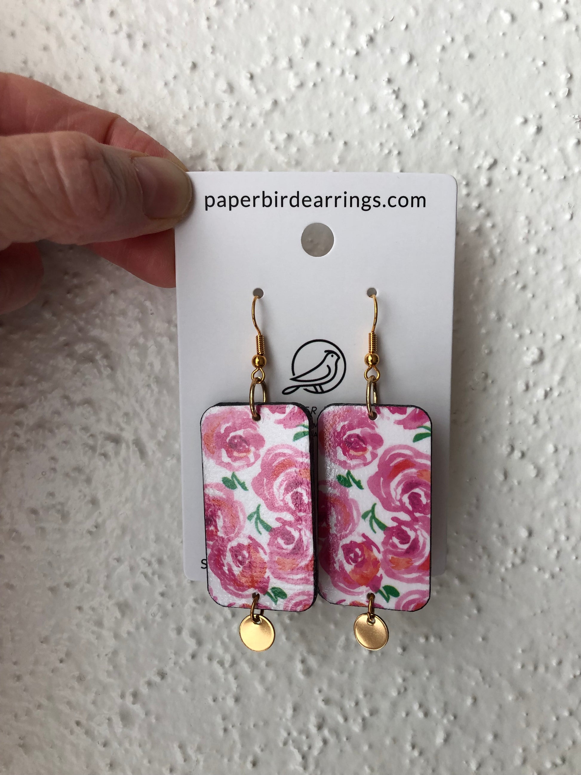 Watercolor roses paper earrings feature delicate roses that symbolize beauty and femininity, a great anniversary gift.